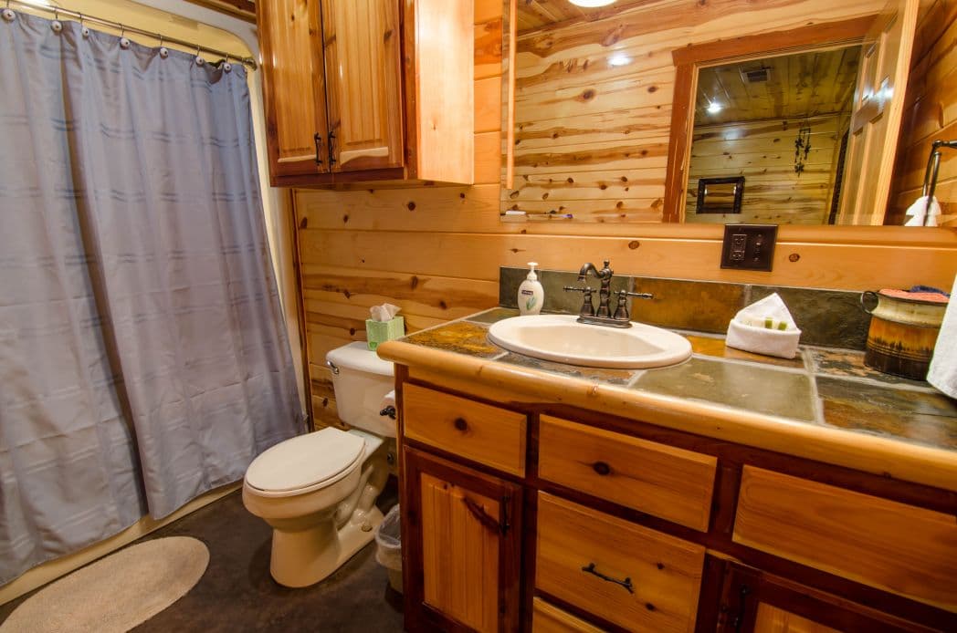 As you walk in the front door you'll immediately notice the high ceilings and unique architecture that makes The M a favorite of so many. The open concept kitchen and living area invites you to relax and enjoy all the comforts of home with plenty of space for family and friends.The M cabin features two bedrooms downstairs with large windows in both. Both rooms are spacious and comfortable with an abundance of space for families. The upstairs loft is a hidden gem within the cabin which features it's own private bathroom and enough space for extra bedding!